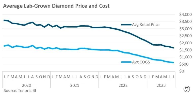 Tenoris认为,培育钻石除了价格之外的各项指数都获得增长。“重要的是,经过数月时间的市场调整,之前(培育钻石和天然钻石)相互接近的市场份额目前已经达到了50/50。”
