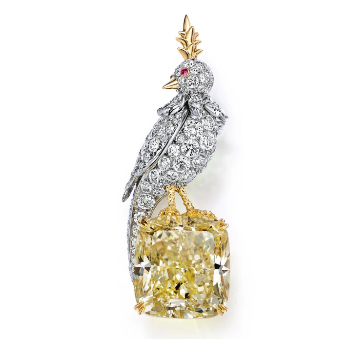继今年早些时候发布史隆伯杰系列“石上鸟”作品后,蒂芙尼再度推出该系列全新秋季作品。新作以品牌传奇设计师让·史隆伯杰于1965年打造的经典“石上鸟”胸针为灵感,呈献耀目迷人的黄钻与钻石珠宝。如今,蒂芙尼焕新演绎这一经典意象,赋予铺镶钻石的小鸟自在翱翔的姿态,围绕着稀世美钻翩翩起舞。每件作品中,小鸟栖息的姿态皆经过悉心考量,完美融合与之搭配的宝石,生动诠释让·史隆伯杰的艺术构思。在全新项链与胸针作品中,小鸟的羽毛变得更加纤长,而它的视角同样经过精心调整,与所有欣赏它的人们产生互动。这些瞩目钻石包括重逾20克拉和重逾28克拉的浓彩黄钻,以及分别重逾10克拉、20克拉和22克拉的钻石,堪称该系列中最大的钻石。
