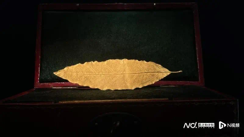 这枚金叶子来自法国皇帝拿破仑一世的黄金月桂冠,1804年12月2日拿破仑称帝时,曾佩戴这顶冠冕出席了加冕大典,从此头戴桂冠的形象成为了历史记载中拿破仑的主要造型之一。拿破仑兵败滑铁卢后,这顶黄金月桂冠被复辟的波旁王朝于1819年在巴黎铸币厂熔化成一个小金球。如今仅有两枚金叶子幸存于世,其中一枚藏于法国枫丹白露宫。