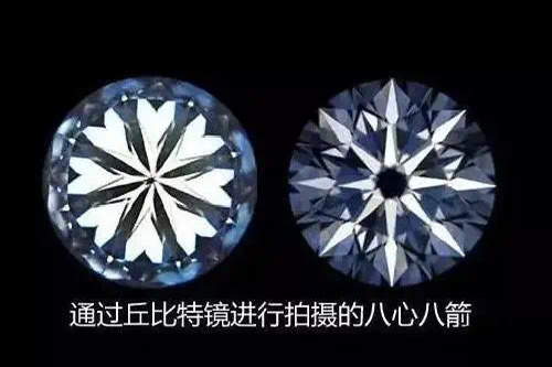 八心八箭是钻石专业术语之一。,也称"丘比特"切工,专业人士也以“H&A”来表示。完美对称的八颗心和八支箭,精确无瑕的切工令人惊叹。