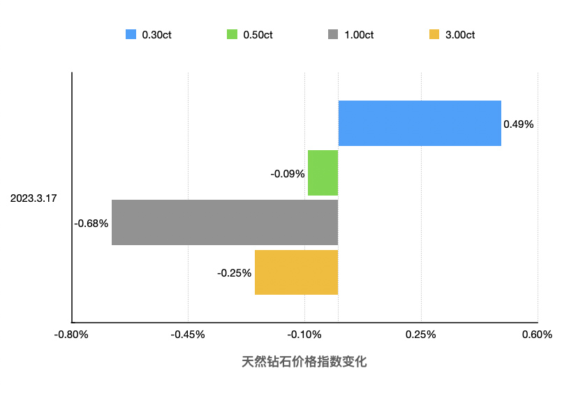 与此同时,0.29克拉以下的部分圆钻和异形钻出现了不同程度的涨价。